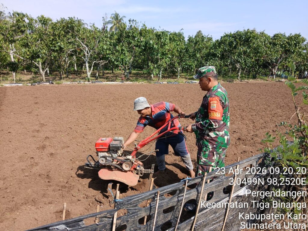 Karo, Jurnaliskaro.com,- Jalin kebersamaan dan sinergitas antara masyarakat dengan TNI, Koramil 07 Juhar Kodim 0205 Tanah Karo membantu warga binaan yang sedang melakukan perawatan tanaman bawang merah di Desa Pasar Baru Kec. Juhar, Kamis (23/04/2026) pagi.