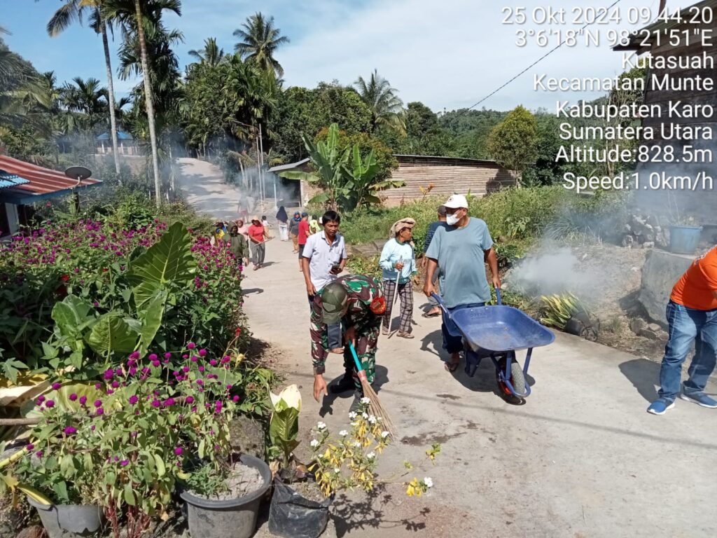 Jumat Bersih Koramil 06 Munte Bersama Masyarakat Gotong Royong Bersihkan Lingkungan