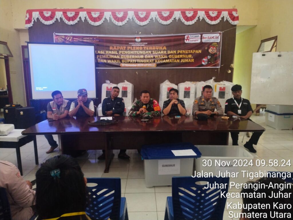 Koramil 07 Juhar Hadiri Rapat Pleno Terbuka Rekapitulasi Penghitungan Hasil Suara Pilkada Karo