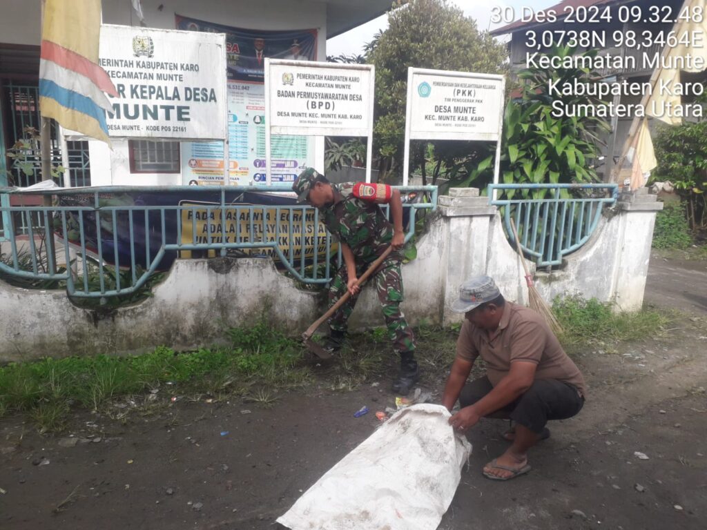 Ciptakan Lingkungan Bersih Koramil 06 Munte Ajak Masyarakat Gotong Royong