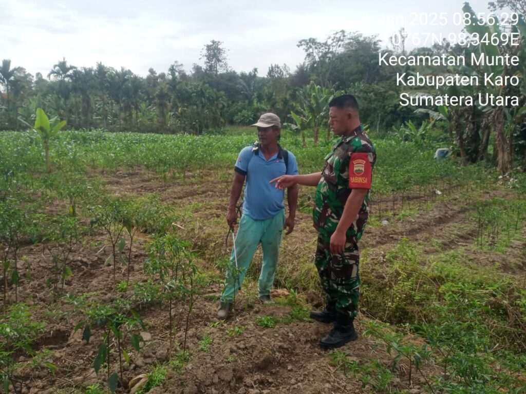 Babinsa Koramil 06 Munte Giat Pendampingan Petani Perawatan dan Penyemprotan Hama Tanaman Cabai Milik Petani