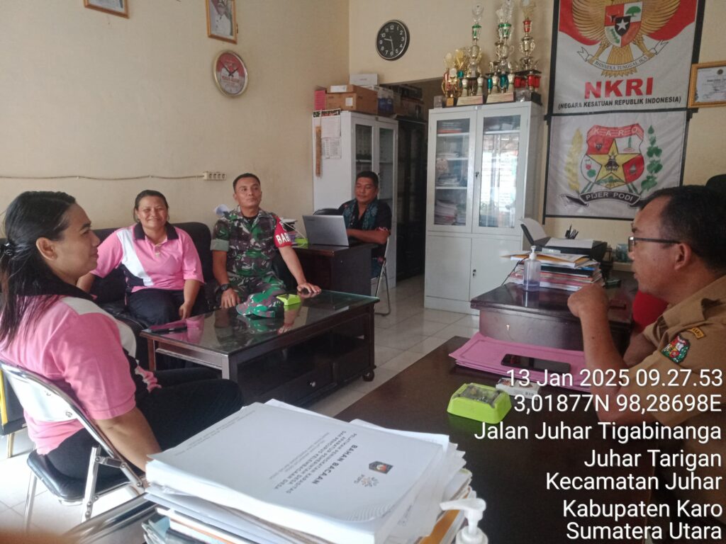 Babinsa Koramil 07 Juhar Komsos Bersama Perangkat Desa Juhar Tarigan