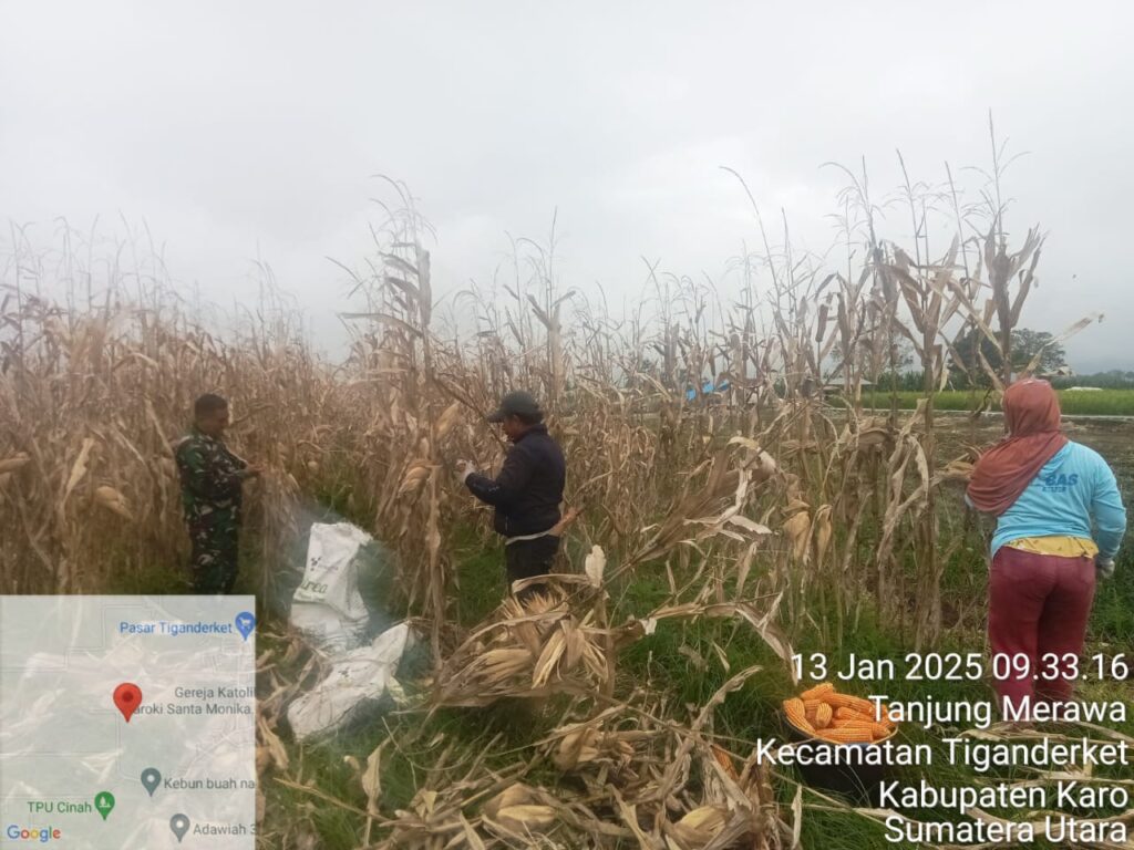 Dukung Ketahanan Pangan Babinsa Koramil 05 Payung Bantu Petani Panen Tanaman Jagung