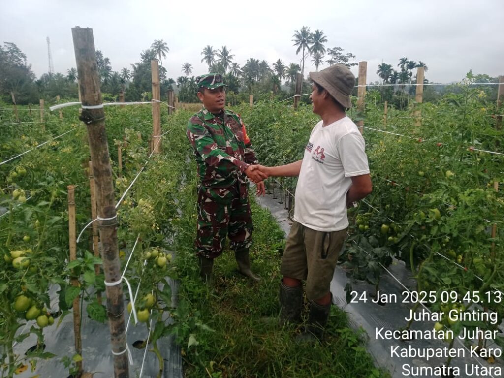 Koramil 07 Juhar Komsos Bersama Petani Pengecekan dan Penyemprotan Racun Hama Tanaman Tomat