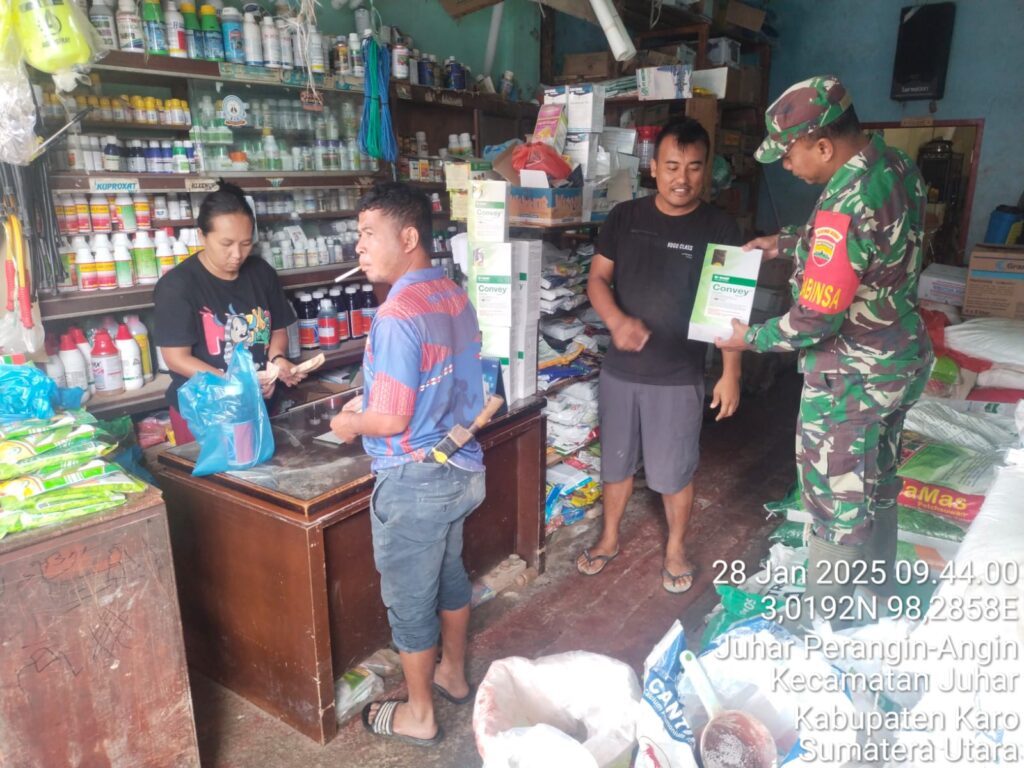 Pastikan Ketersediaan Pupuk, Koramil 07 Juhar Cek Toko Pupuk di Desa Juhar Perangin angin