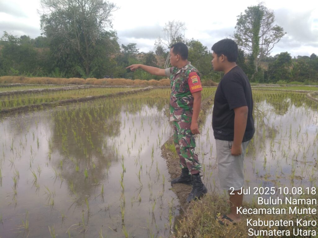 Koramil 06 Munte Giat Pengecekan Tanaman Padi Sawah di Desa Buluh Naman