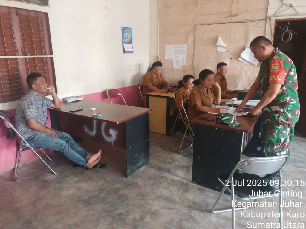 Karo, Jurnaliskaro.com,- Untuk menciptakan situasi yang aman, Koramil 07 Juhar Kodim 0205 Tanah Karo melaksanakan Komunikasi Sosial (Komsos) di Kantor Desa di Desa Juhar Ginting Kec. Juhar, Rabu (02/07/2025) siang. Dalam kegiatan tersebut Babinsa Koramil 07 Juhar Serda Iwan Sinaga, melaksanakan komsos bersama dengan perangkat desa terkait pelayanan kepada warga. Dimana menurutnya aparatur perangkat […]