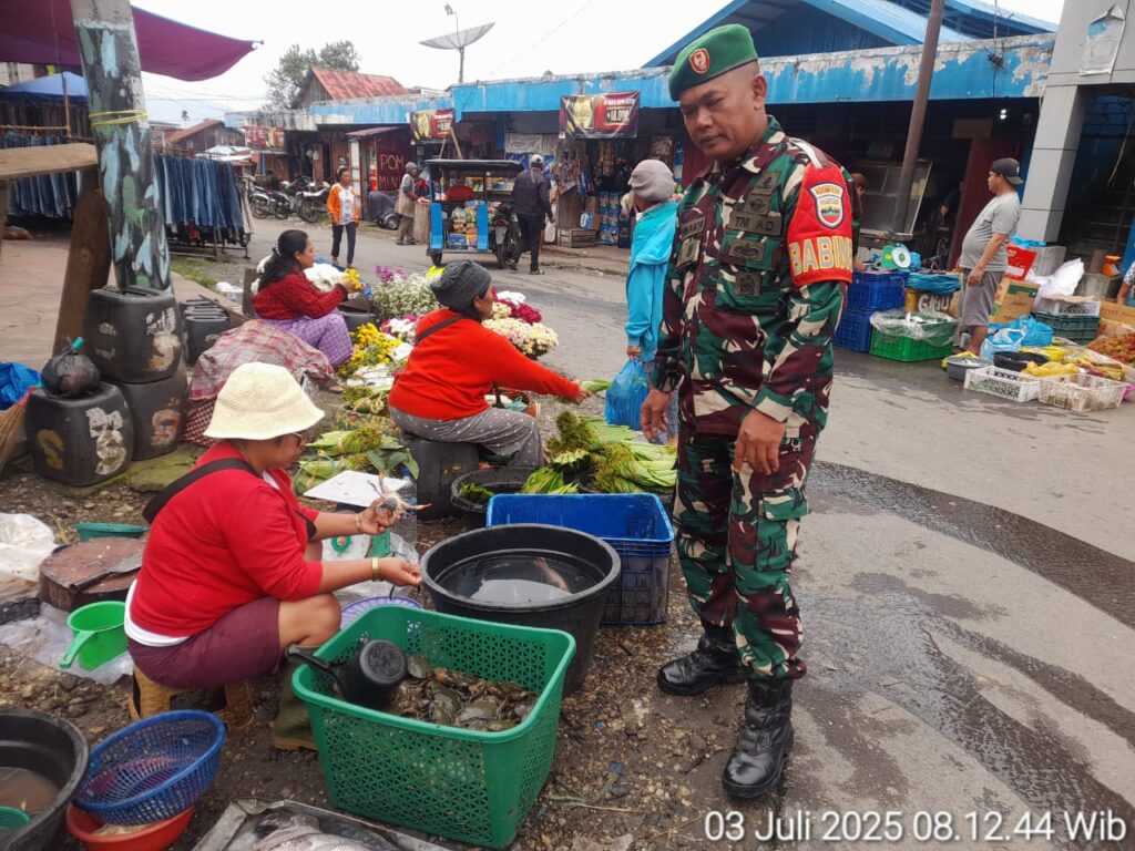 Babinsa Koramil 08 Tiga Binanga Berikan Pemahaman Kebersihan Kepada Pedagang Agar Tidak Buang Limbah Sembarangan