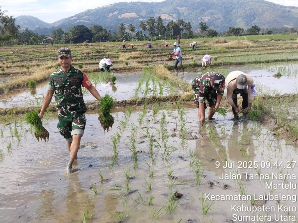 Dukung Ketahanan Pangan Koramil 09 Lau Baleng Bantu Petani Penanaman Padi Sawah