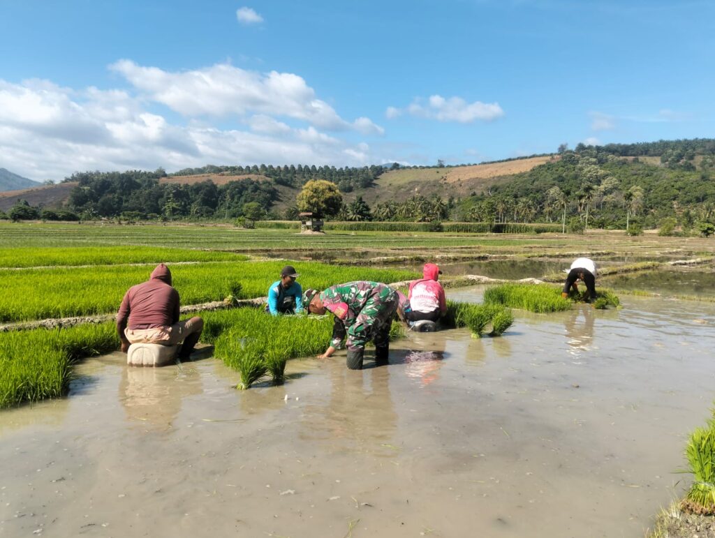 Dukung Ketahanan Pangan Babinsa Koramil 09 Lau Baleng Bantu Petani Menanam Padi