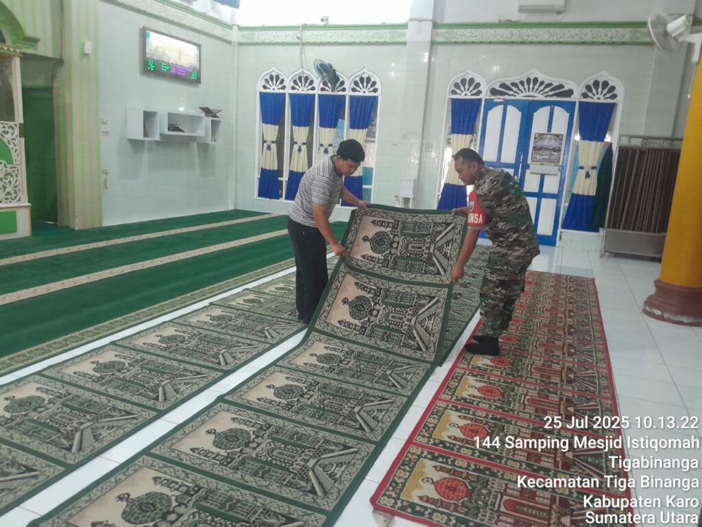 Jumat Berkah Koramil 08 Tiga Binanga Gotong Royong Bersihkan Mesjid Istiqomah