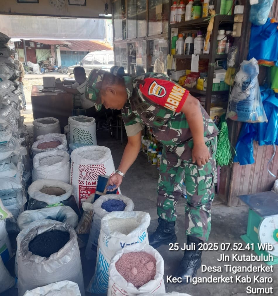 Babinsa Koramil 05 Payung Cek Ketersediaan Pupuk Bersubsidi di Desa Tiga Nderket