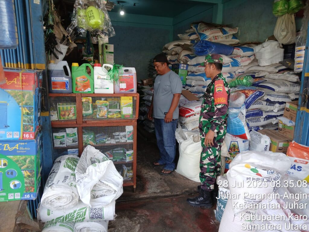 Babinsa Koramil 07 Juhar Cek Ketersediaan Pupuk Bersubsidi di Desa Juhar Perangin angin