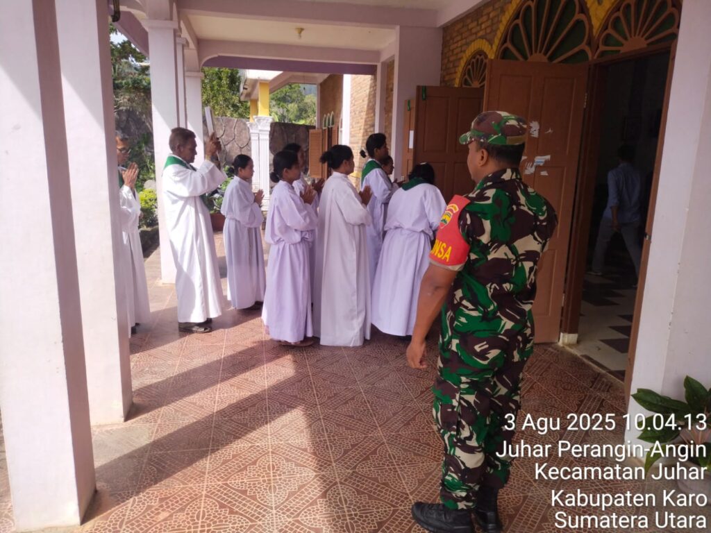 Babinsa Koramil 07 Juhar Pengamanan Gereja Katolik St. Paulus di Desa Juhar Perangin angin