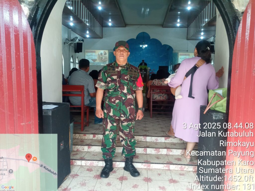 Babinsa Koramil 05 Payung Pengamanan Ibadah di Gereja GBKP di Desa Tiga Nderket