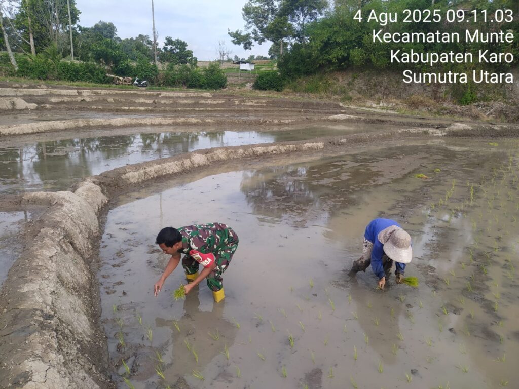 Dukung Ketahanan Pangan Koramil 06 Munte Bantu Petani Penanaman Padi Sawah