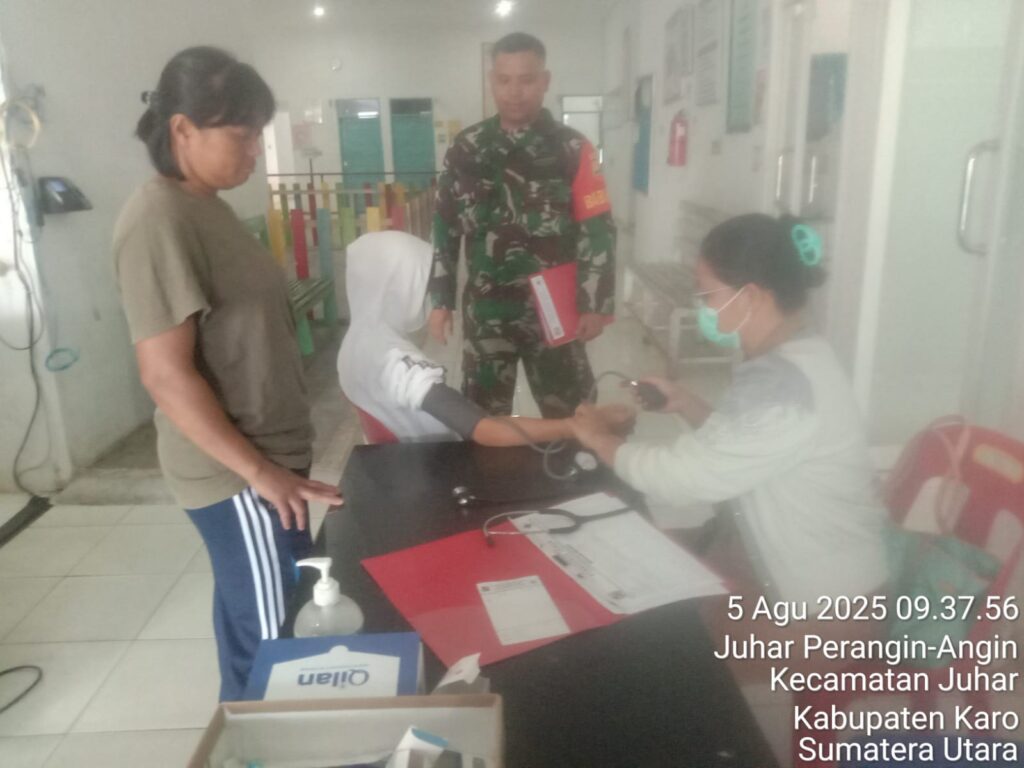 Giat Humanis Koramil 07 Juhar Dampingi Masyarakat Berobat ke Puskesmas
