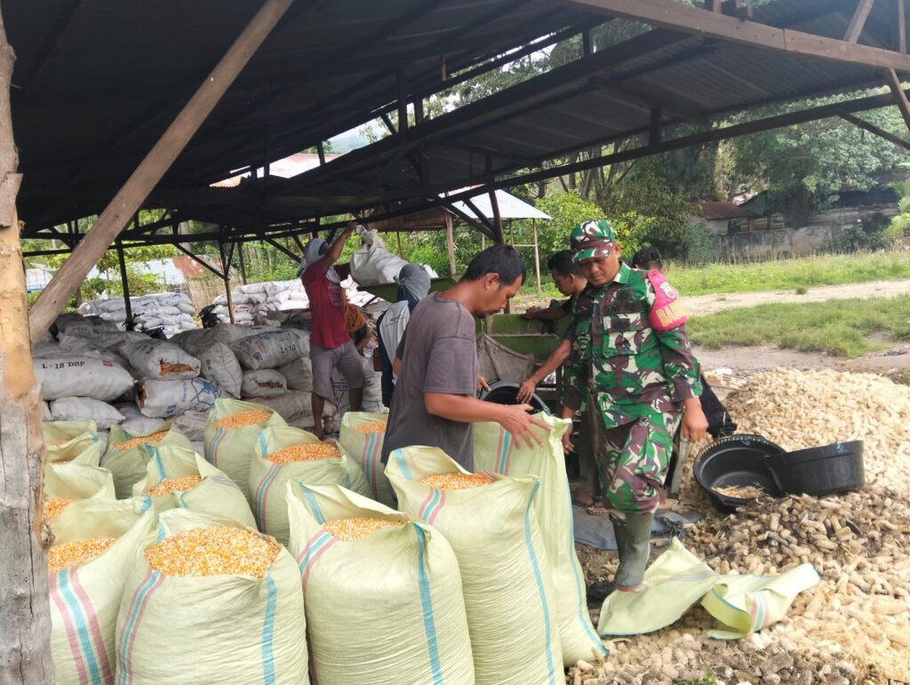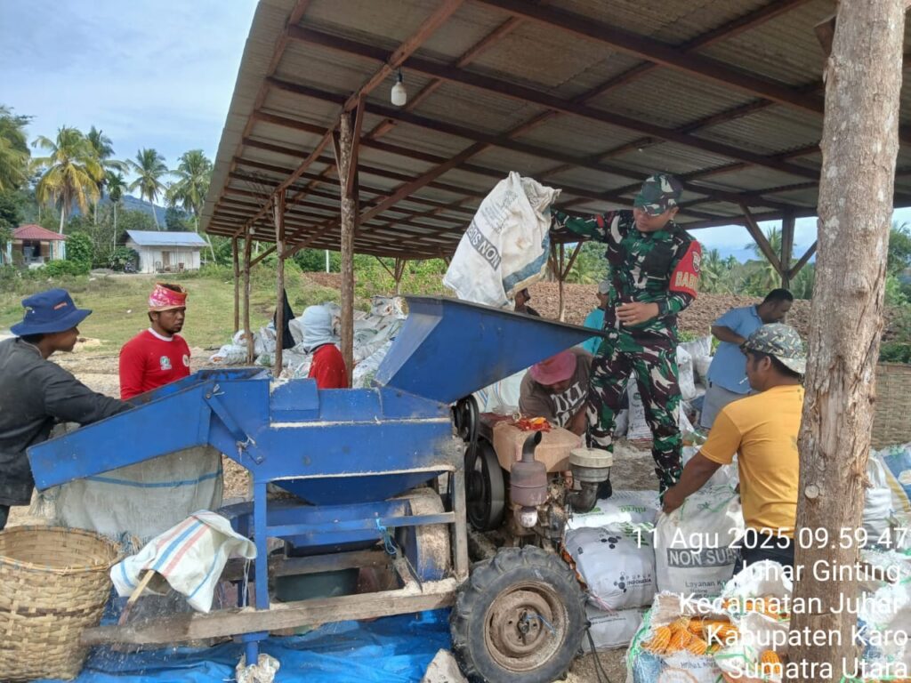 Dukung Ketahanan Pangan Koramil 07 Juhar Bantu Petani Penggilingan Jagung