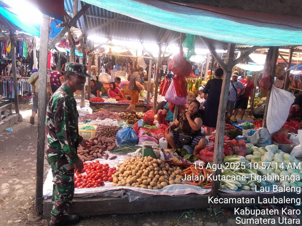 Dukung Ketahanan Pangan Babinsa Koramil 09 Lau Baleng Lakukan Pengecekan Sembako di Pasar Tradisional Lau Baleng