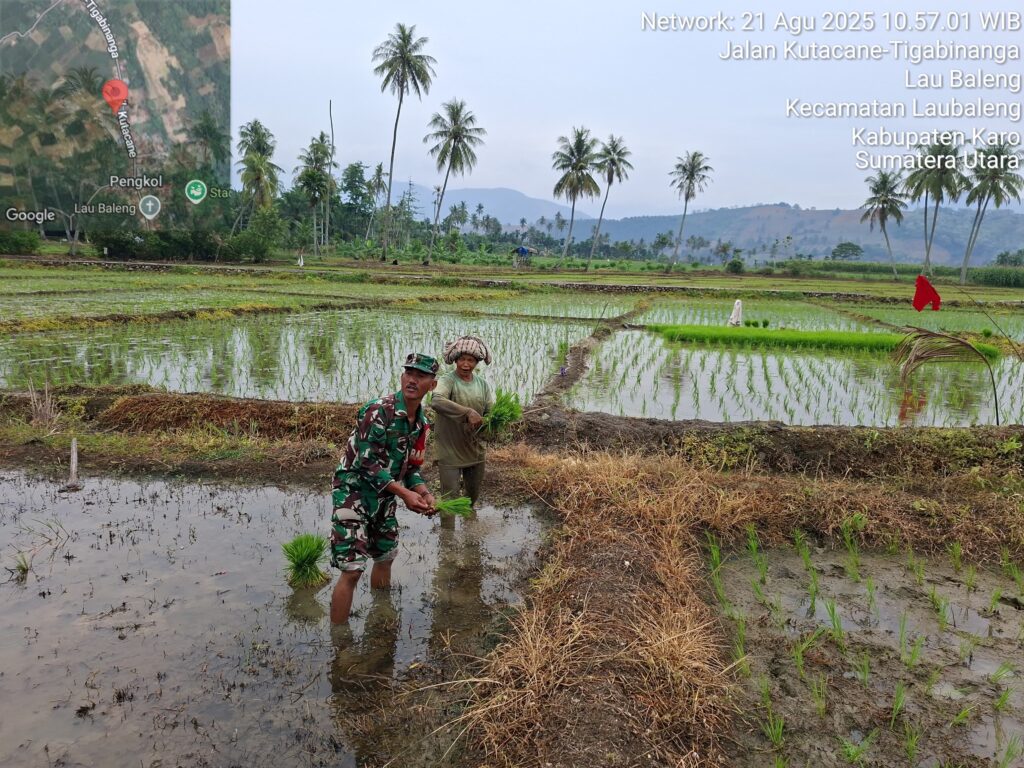 Babinsa Koramil 09 Lau Baleng Komsos Bersama Petani Pengecekan dan Perawatan Padi