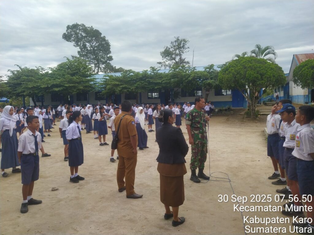 Karo, Jurnaliskaro.com,- Koramil 06 Munte Kodim 0205 Tanah Karo memberikan pemahaman akan Wawasan Kebangsaan dan cinta tanah air kepada anak murid Sekolah SMP Negeri 1 Munte di Desa Munte Kec. Munte, Selasa (30/09/2025) siang. Babinsa Koramil 06 Munte Serka Samsuri, menjelaskan bahwasanya kegiatan ini dilakukan sebagai pembekalan dini kepada siswa terkait salam Pancasila. Dimana […]