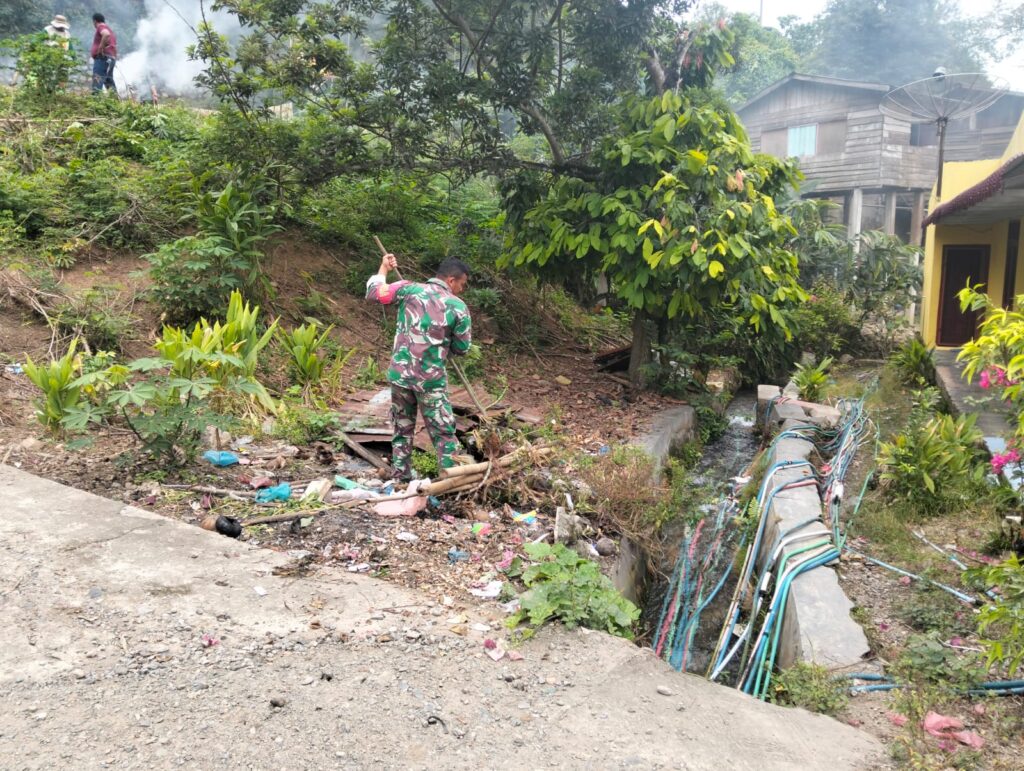 Jumat Bersih, Koramil 09 Lau Baleng Bersama Masyarakat Gotong Royong Bersihkan Lingkungan