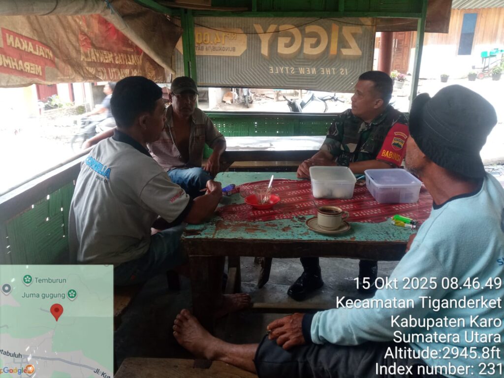 Karo, Jurnaliskaro.com,- Untuk menciptakan situasi yang aman, kondusif dan bersih, Koramil 05 Payung Kodim 0205 Tanah Karo melaksanakan Komunikasi Sosial (Komsos) bersama warga di Desa Temberun Kec. Tiga Nderket, Karo, Rabu (15/10/2025) siang. Dalam kegiatan tersebut Babinsa Koramil 05 Payung Peltu Taufik, melaksanakan komsos dengan masyarakat tetap menjaga ketertiban dan keamanan. Dan tidak terpengaruh […]