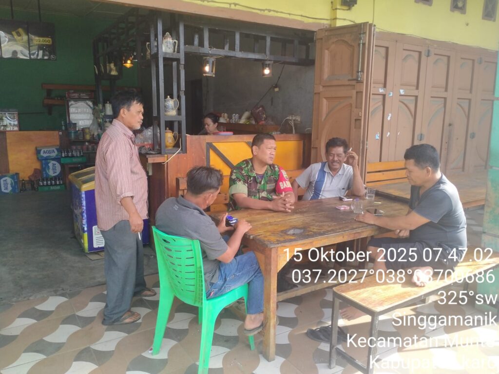 Karo, Jurnaliskaro.com,- Untuk menciptakan situasi yang aman, kondusif dan bersih, Koramil 06 Munte Kodim 0205 Tanah Karo melaksanakan Komunikasi Sosial (Komsos) bersama warga di Desa Singgamanik Kec. Munte, Karo, Rabu (15/10/2025) siang. Dalam kegiatan tersebut Babinsa Koramil 06 Munte Peltu JE Pasaribu, melaksanakan komsos dengan masyarakat tetap menjaga ketertiban dan keamanan. Dan tidak terpengaruh […]