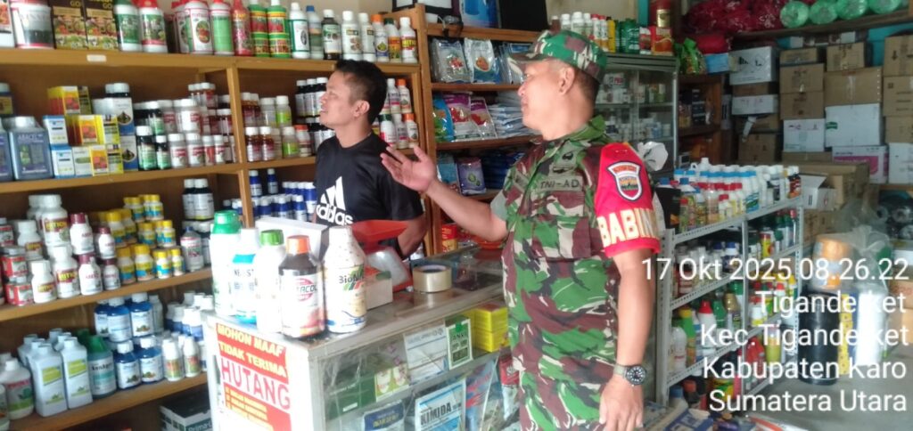 Babinsa Koramil 05 Payung Monitoring Ketersediaan Pupuk Bersubsidi dan Obat Tanaman di Desa Tiga Nderket