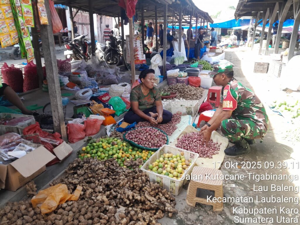Dukung Ketahanan Pangan Koramil 09 Lau Baleng Giat Pengecekan Sembako di Pasar Tradisional Lau Baleng