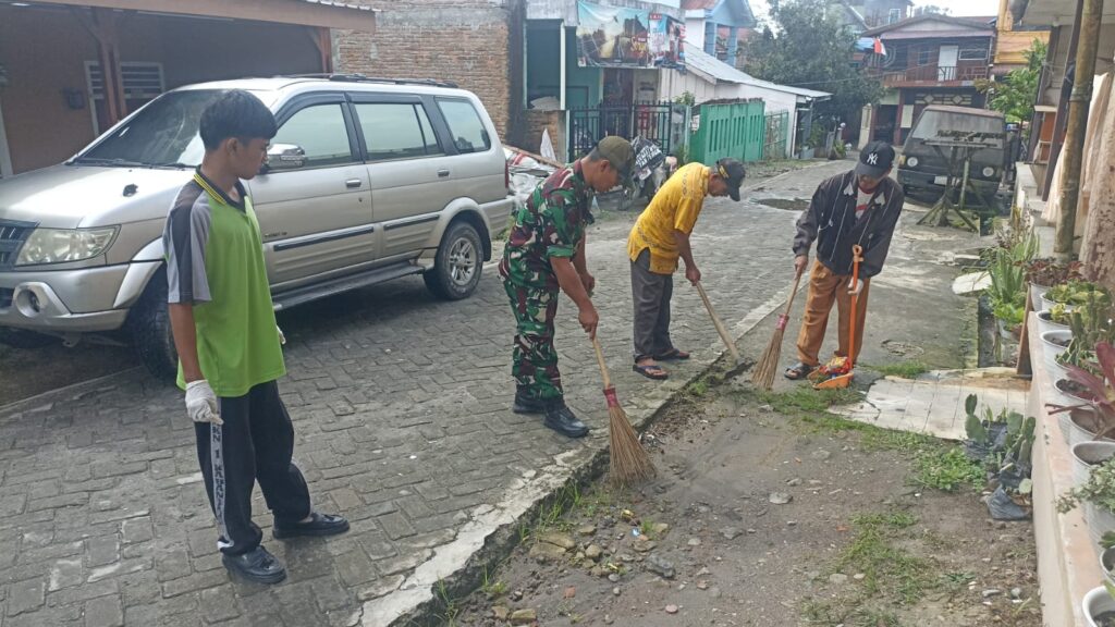 Koramil 03 Berastagi Bersama Masyarakat Gotong Royong Bersihkan Lingkungan