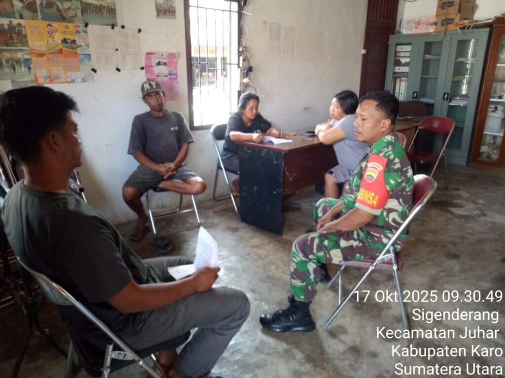 Jalin Sinergitas Koramil 07 Juhar Bersama Perangkat Desa Sigenderang Terkait Pelayanan Kepada Masyarakat