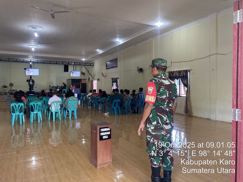 Babinsa Koramil 05 Payung Pengamanan Ibadah di Gereja GBKP di Desa Tiga Nderket
