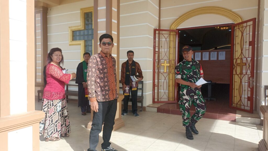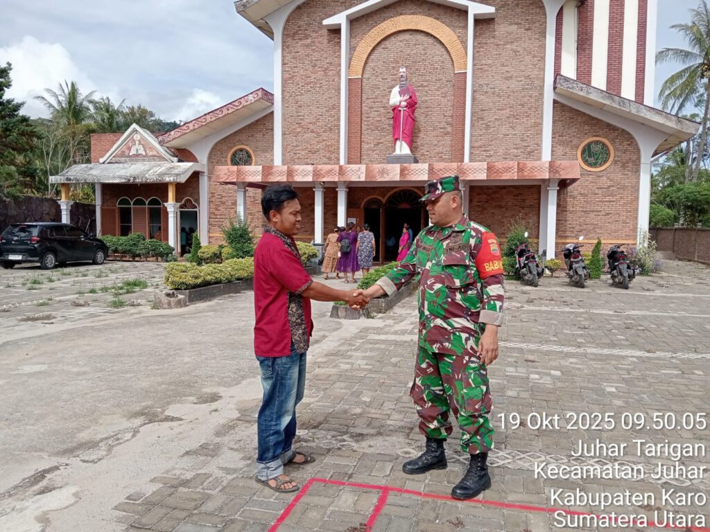 Babinsa Koramil 07 Juhar Pengamanan Gereja Katolik Santa Paulus di Desa Juhar Perangin angin