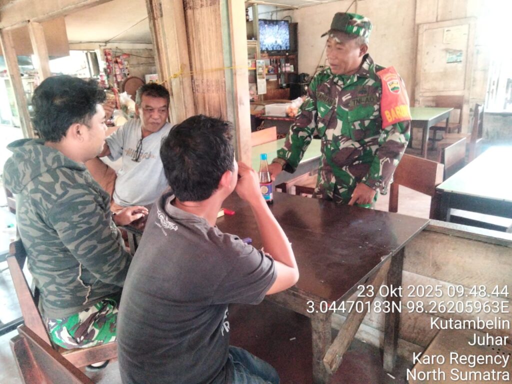 Karo, Jurnaliskaro.com,- Untuk menciptakan situasi yang aman, kondusif dan bersih, Koramil 07 Juhar Kodim 0205 Tanah Karo melaksanakan Komunikasi Sosial (Komsos) bersama warga di Desa Kutambelin, Kec. Juhar, Karo, Kamis (23/10/2025) siang. Dalam kegiatan tersebut Babinsa Koramil 07 Juhar Serka Sarwan, melaksanakan komsos dengan masyarakat tetap menjaga ketertiban dan keamanan. Dan tidak terpengaruh akan […]