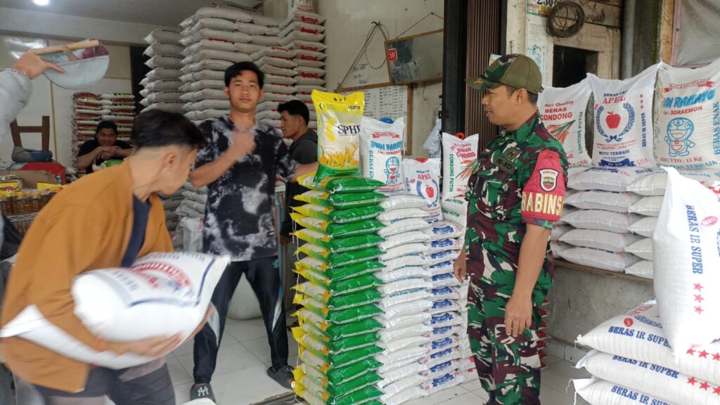 Dukung Ketahanan Pangan Koramil 03 Berastagi Monitoring Ketersediaan Stok Beras di Pusat Pasar Berastagi