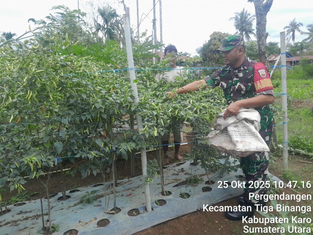 Dukung Ketahanan Pangan Koramil 08 Tiga Binanga Bantu Petani Panen Cabai Rawit di Desa Simpang Pergendangan