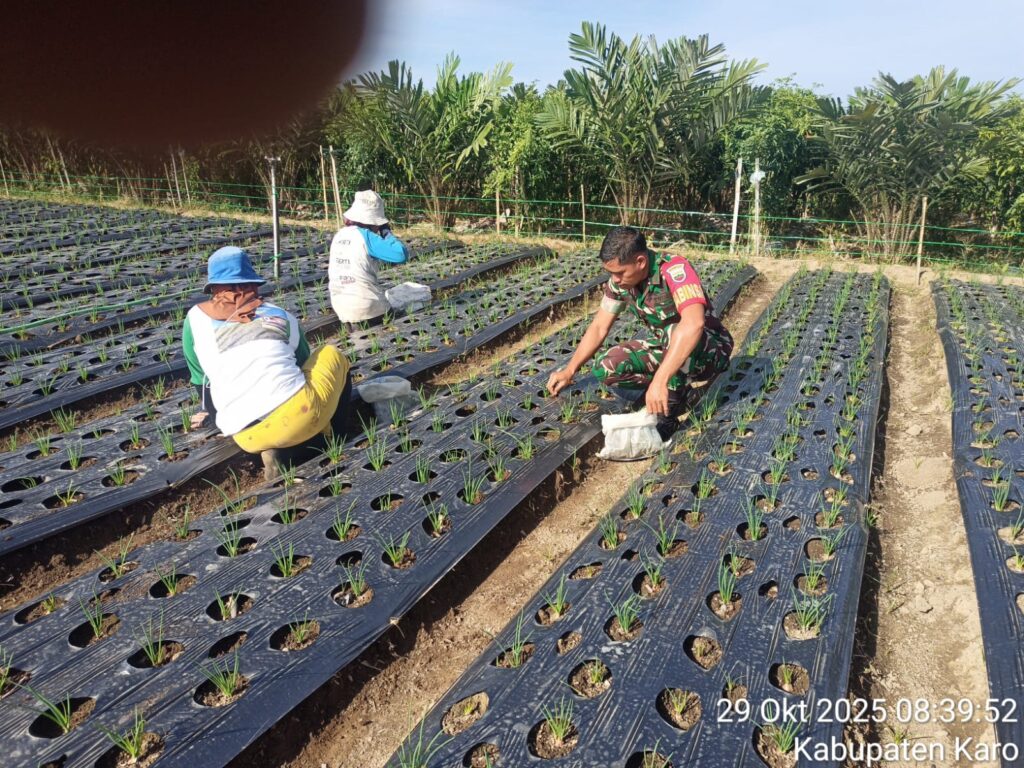 Dukung Ketahanan Pangan Koramil 05 Payung Bantu Petani Perawatan Tanaman Bawang Merah