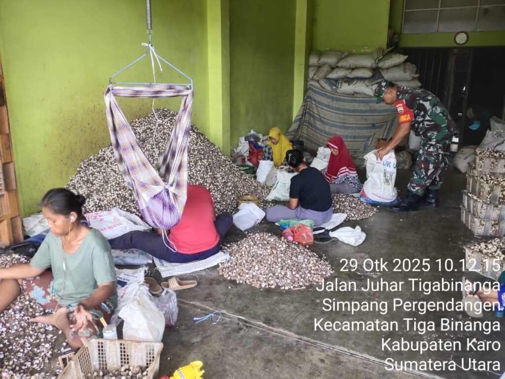 Koramil 08 Tiga Binanga Giat Bantu Petani Pengolahan Hasil Pertanian Pengupasan Kemiri