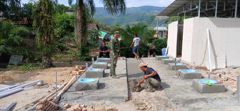 Babinsa Koramil 09 Lau Baleng Bersama Warga Giat Pembangunan Kamar Mandi di Yon TP 904/ Garamata di Kec. Lau Baleng