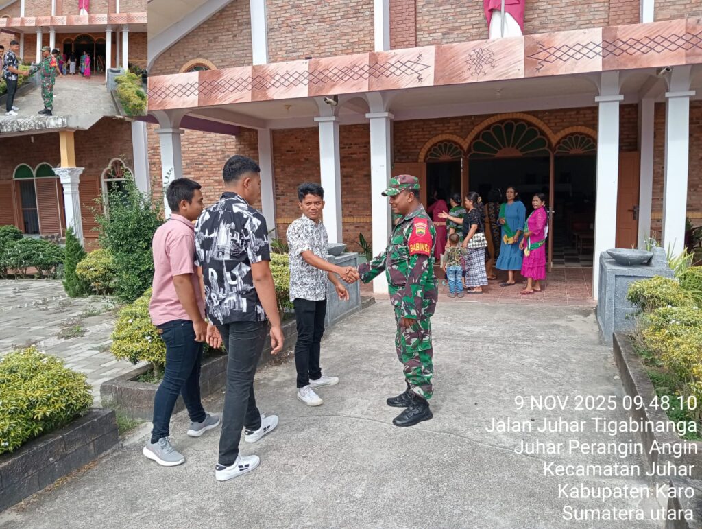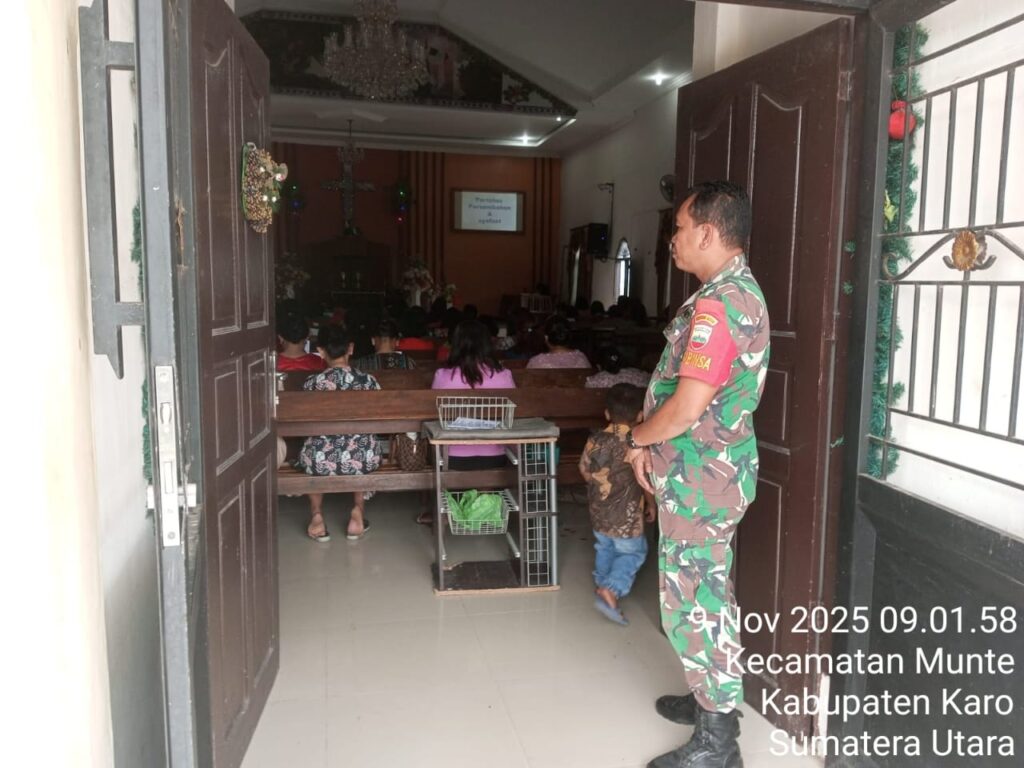 Babinsa Koramil 07 Juhar Pengamanan Gereja Santa Paulus di Desa Juhar Perangin angin