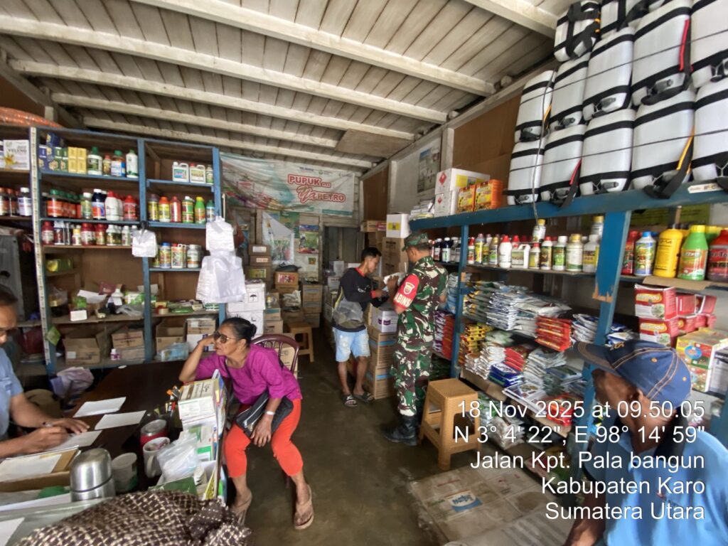 Babinsa Koramil 08 Tiga Binanga Monitoring Ketersediaan Pupuk Bersubsidi dan Obat Tanaman