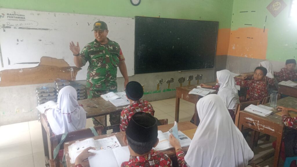 Babinsa Koramil 03 Berastagi Ajarkan Wasbang Cinta Tanah Air Pada Siswa MIS Ittihad Iyah Berastagi