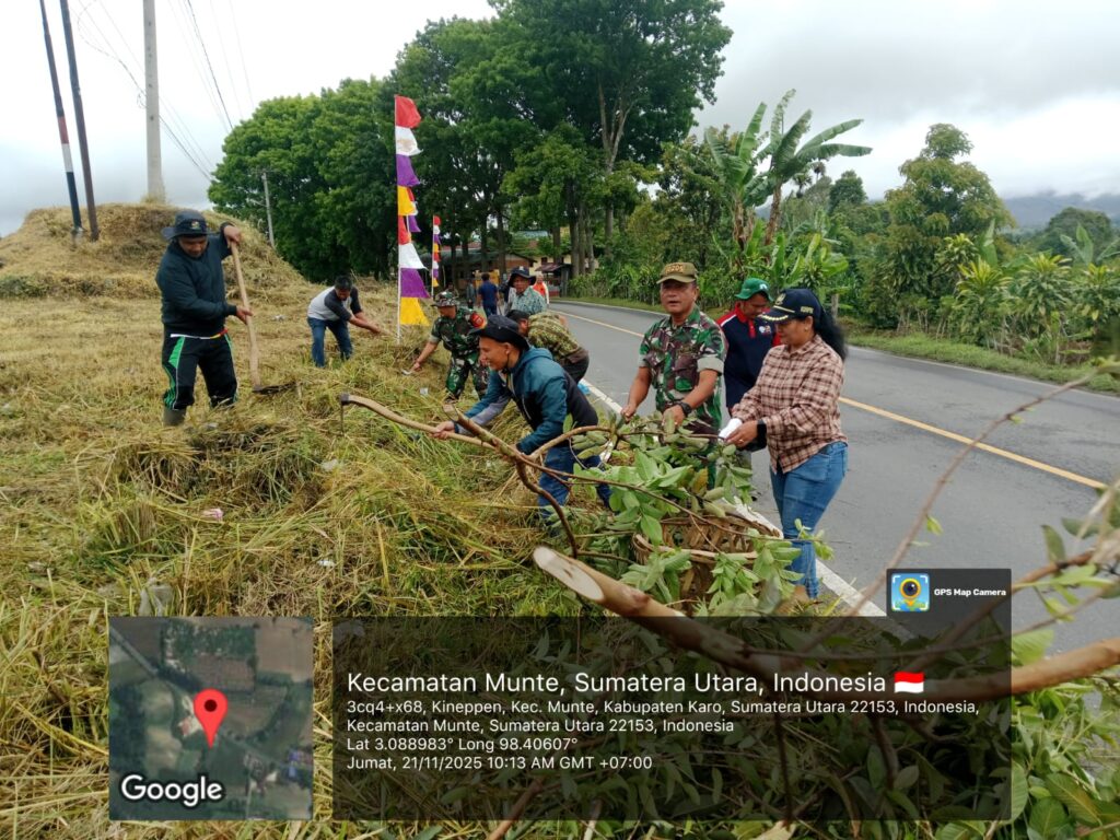 Karo, Jurnaliskaro.com,- Dengan tujuan menciptakan lingkungan yang bersih dan sehat, Koramil 06 Munte Kodim 0205 Tanah Karo bersama warga melaksanakan gotong royong membersihkan lingkungan di Desa Bandar Meriah Kec. Munte, Jumat (21/11/2025) siang. Menurut Danramil Koramil 06 Kapten Inf. JE Sembiring, kegiatan gotong royong ini dilakukan bersama dengan Forkopimca Munte dan tim PPL membersihkan […]