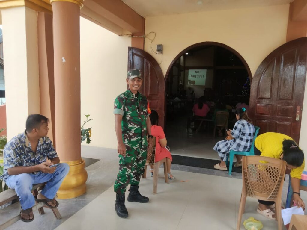 Babinsa Koramil 05 Payung Pengamanan Ibadah di Gereja Khatolik di Desa Tanjung Merawa