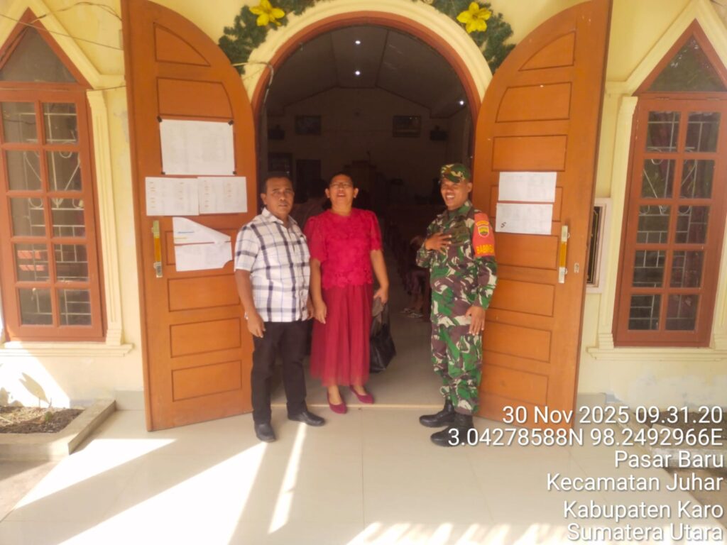 Babinsa Koramil 07 Juhar Pengamanan Gereja GBKP Desa Pasar Baru