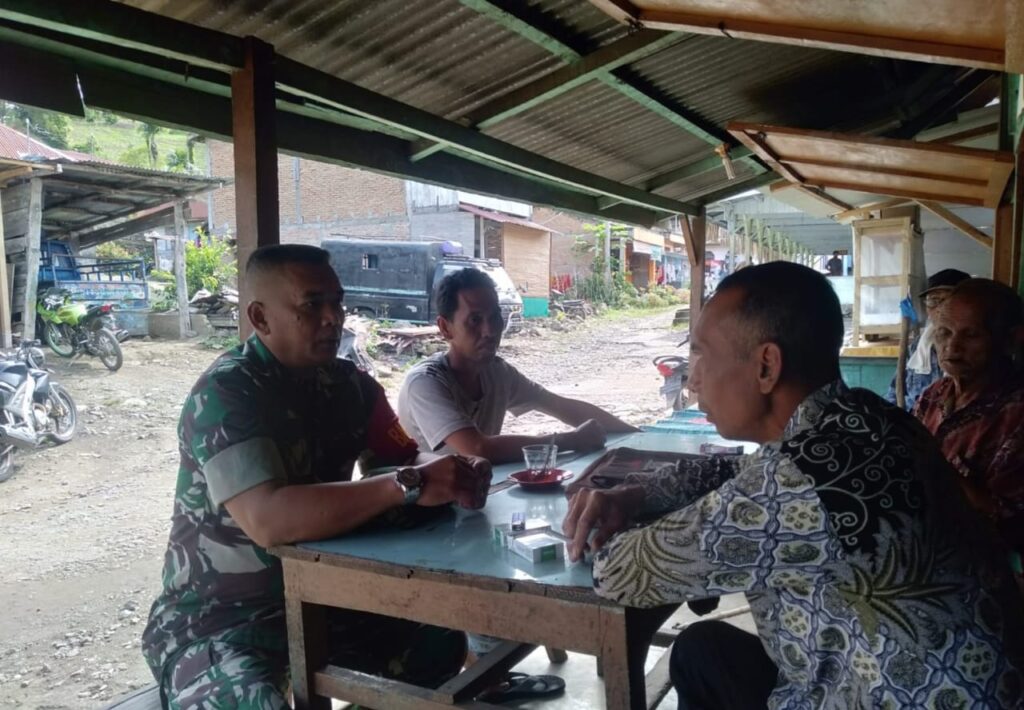 Babinsa Koramil 06 Munte Komsos Bersama Warga Imbau Tidak Terpengaruh Praktik Perjudian dan Narkoba