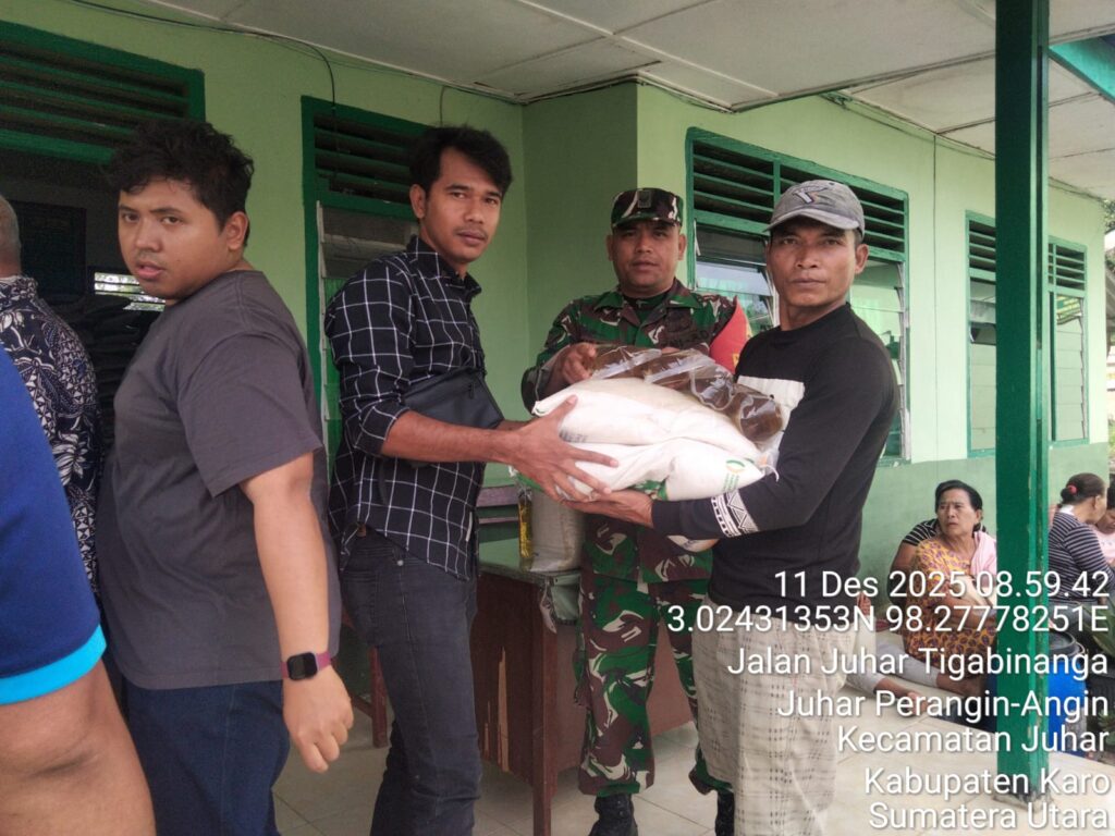 Koramil 07 Juhar Giat Pendampingan Pendistribusian Bantuan Pangan dari Pemerintah melalui Bulog
