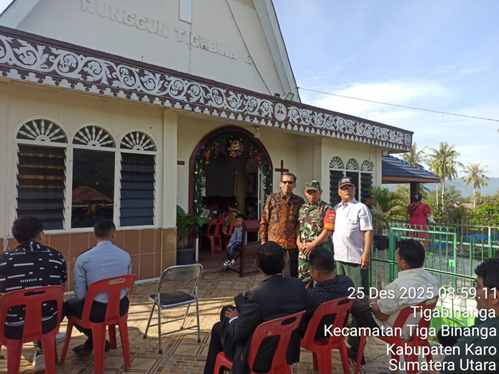 Karo, Jurnaliskaro.com,- Anggota Babinsa Koramil 08 Tiga Binanga Kodim 0205 Tanah Karo, menghadiri kegiatan perayaan Misa Natal di gereja GBKP Tiga Binanga di Kel. Tiga Binanga Kec. Tiga Binanga, Kamis (25/12/2025) pagi. Menurut Babinsa Koramil 08 Tiga Binanga Sertu Heru Suranto, kegiatan ini adalah untuk memastikan bahwasanya masyarakat yang merayakan Natal merasakan aman dan […]