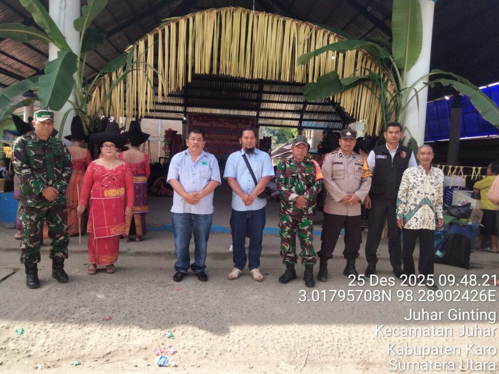 Karo, Jurnaliskaro.com,- Anggota Babinsa Koramil 07 Juhar Kodim 0205 Tanah Karo, menghadiri kegiatan perayaan Misa Natal di Losd Desa Juhar Sadanioga di Kec. Juhar, Kamis (25/12/2025) pagi. Menurut Babinsa Koramil 07 Juhar Peltu Darianto, kegiatan ini adalah untuk memastikan bahwasanya masyarakat yang merayakan Natal merasakan aman dan nyaman. “Giat ini kita memastikan masyarakat yang […]